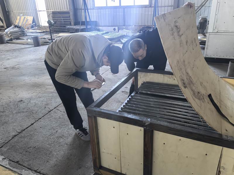 公司又一空冷器外貿訂單順利交付,客戶到工廠認真核對尺寸和數量,得到了客戶的一致認可